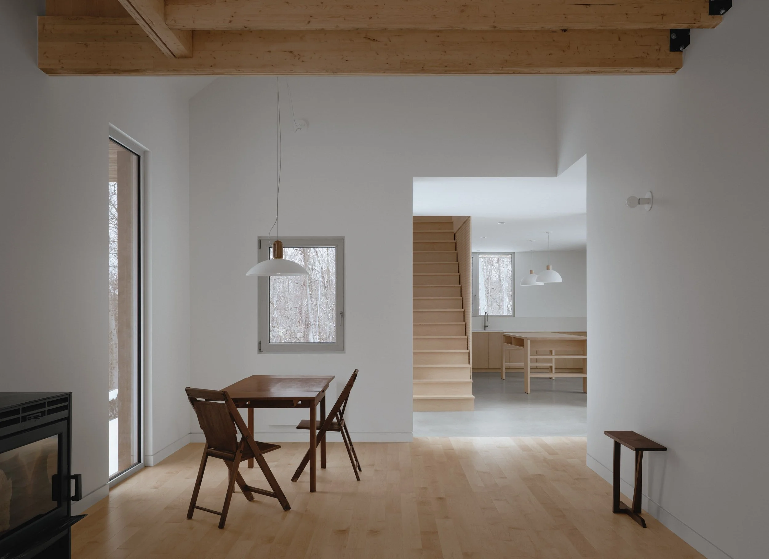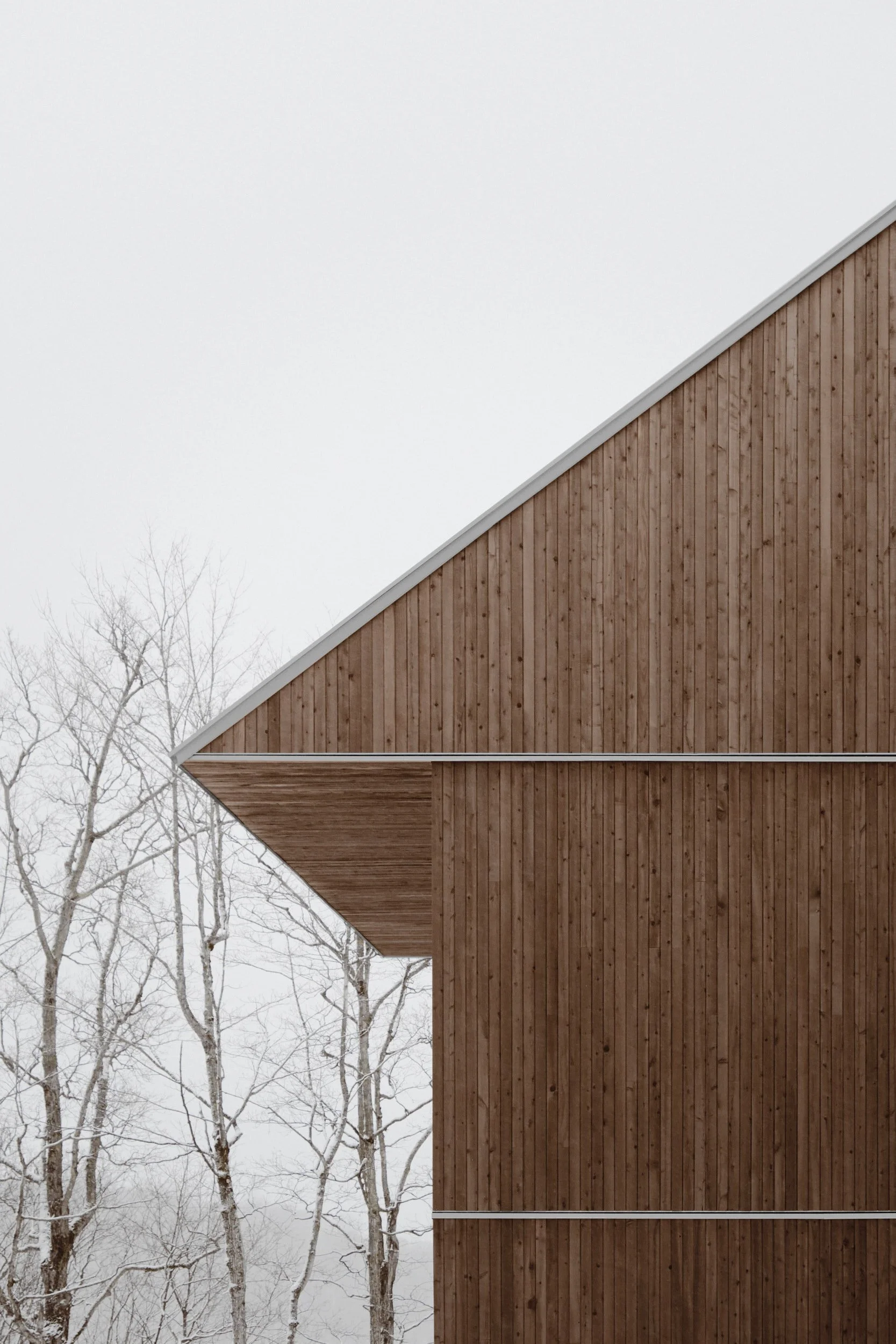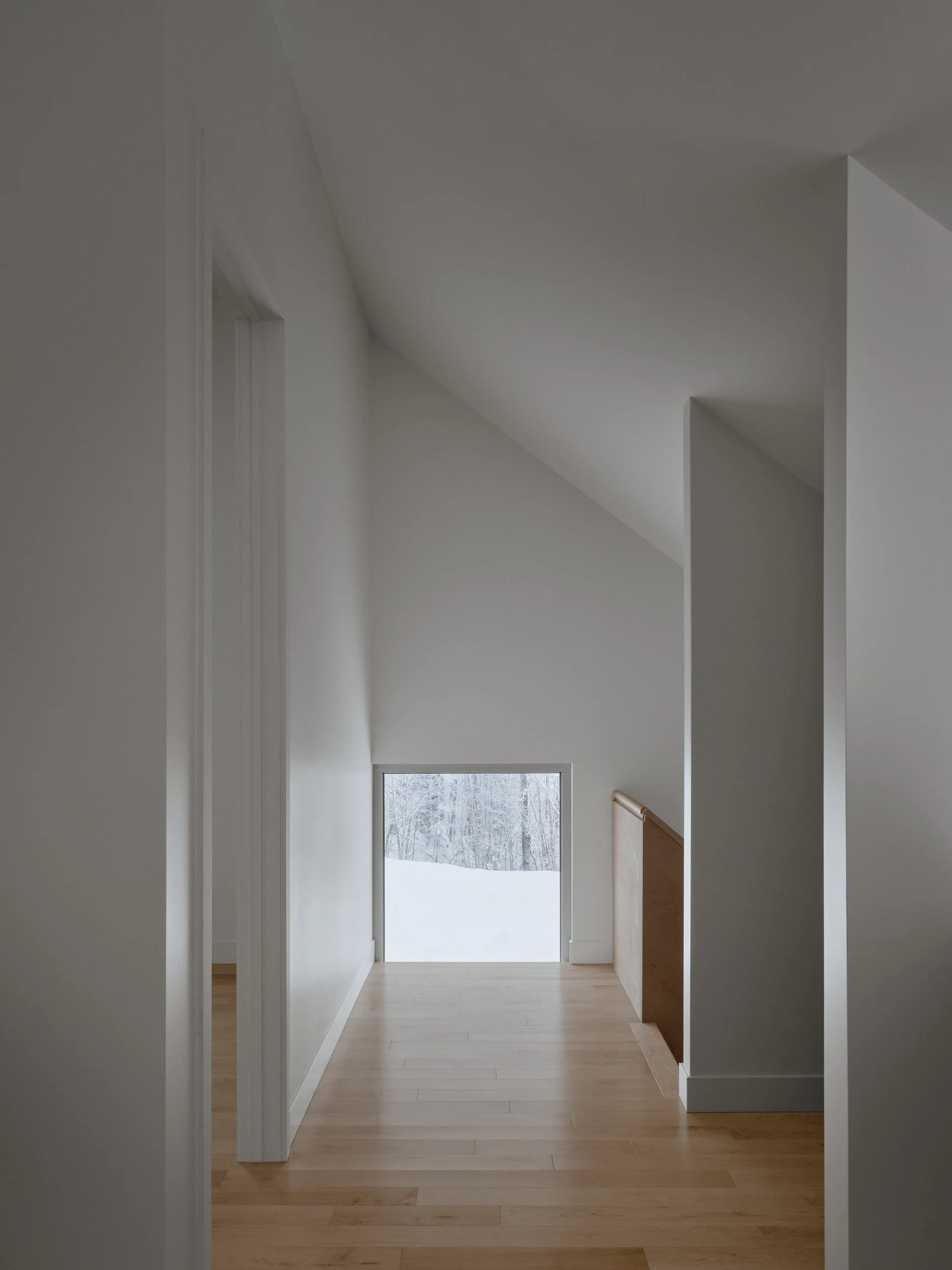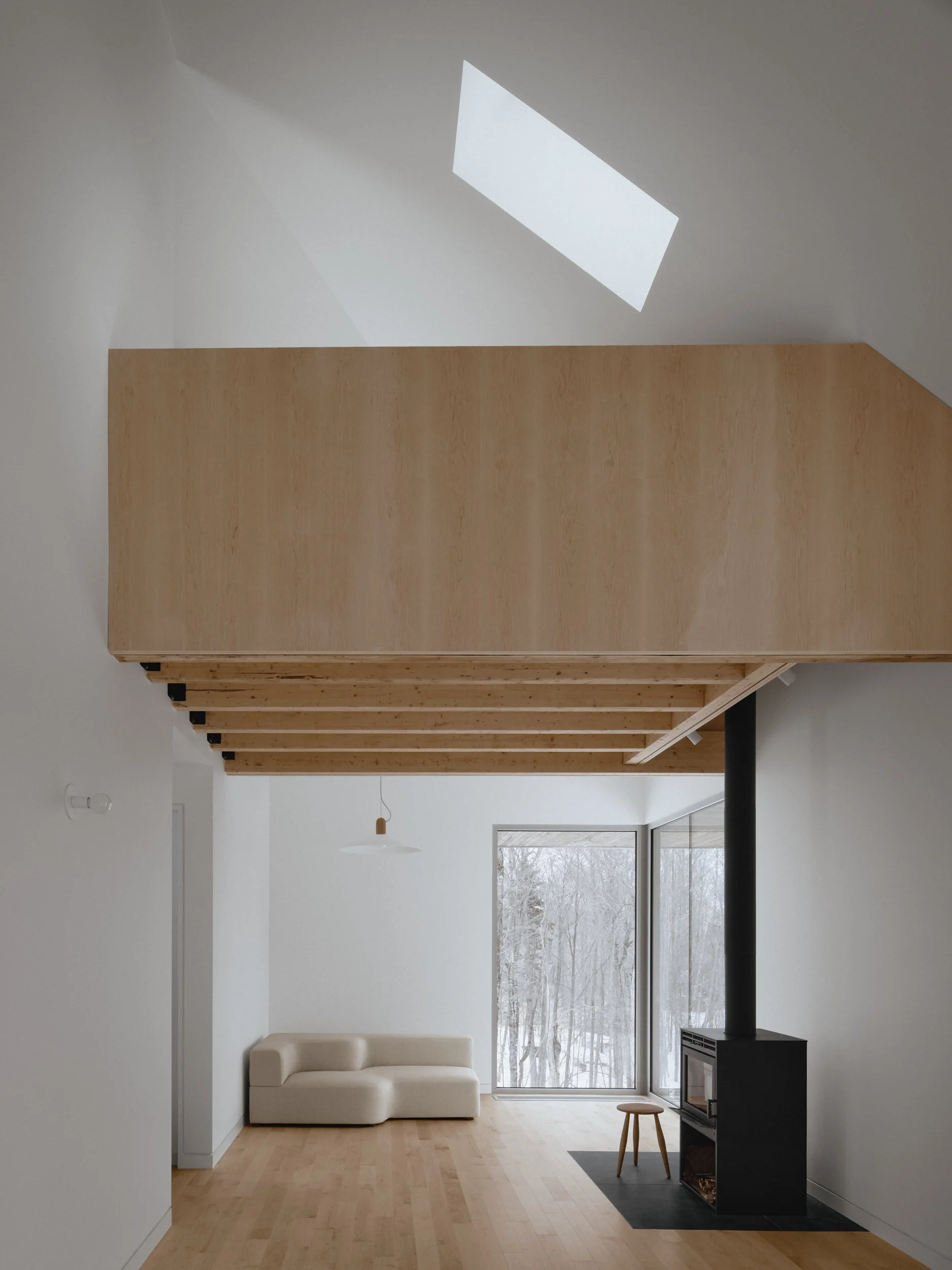 Located in the wooded, mountainous region of the Laurentians, Quebec, the piece of land presented by the clients posed significant challenges from the outset of the project. Only a small buildable footprint remained once zoning setbacks, environmental factors and a minimum of privacy from the road were considered. The result is an area of land defined by its nearly 45% slope.